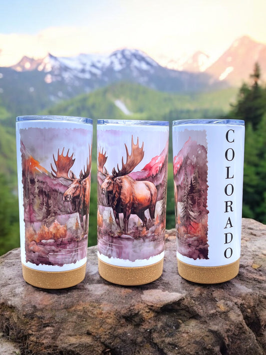 Watercolor Moose 17 oz Stainless Steel Tumbler with Metal Straw and Silicone Topper