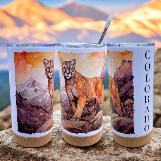 Watercolor Mountain Lion 17 oz Stainless Steel Tumbler with Metal Straw and Silicone Topper