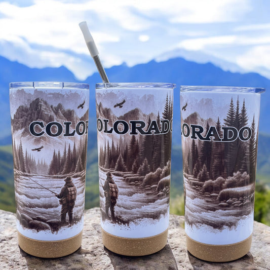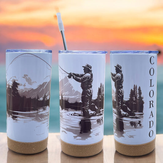 Vintage Fly Fisherman 17 oz Stainless Steel Tumbler with Metal Straw and Silicone Topper