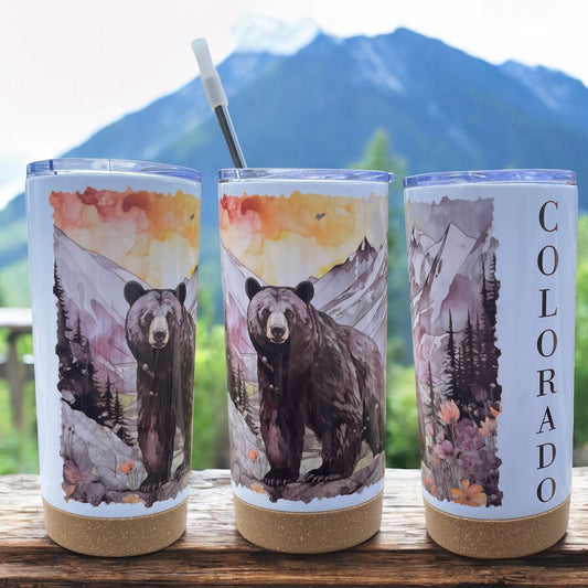 Watercolor Bear 17 oz Stainless Steel Tumbler with Metal Straw and Silicone Topper