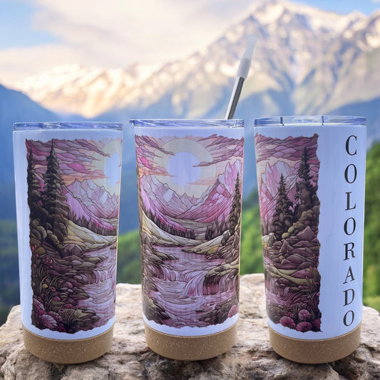 Watercolor Mountain Wildflowers 17 oz Stainless Steel Tumbler with Metal Straw and Silicone Topper